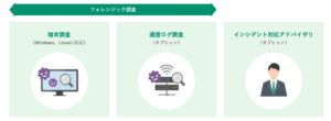 「LANSCOPE サイバープロテクション」のインシデント対応パッケージは、フォレンジック調査の専門家がお客様の環境を調査し、感染状況や影響範囲を特定します。