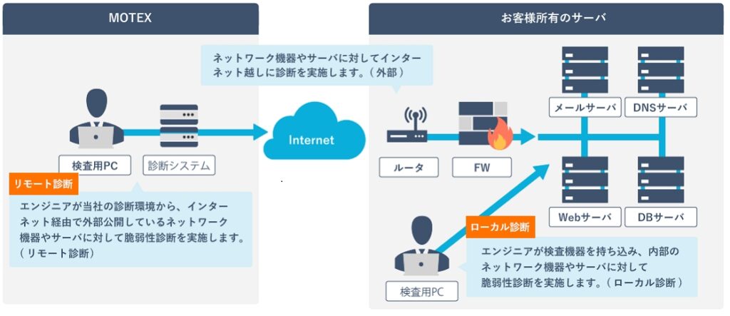 | ネットワーク脆弱性診断 | ネットワーク機器やサーバーの設定ミス、不要な開放ポート、不適切なフィルタリングルールなどを特定する診断 |