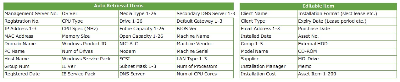 Automatic collect over 50 types of hardware information, such as computer name and IP