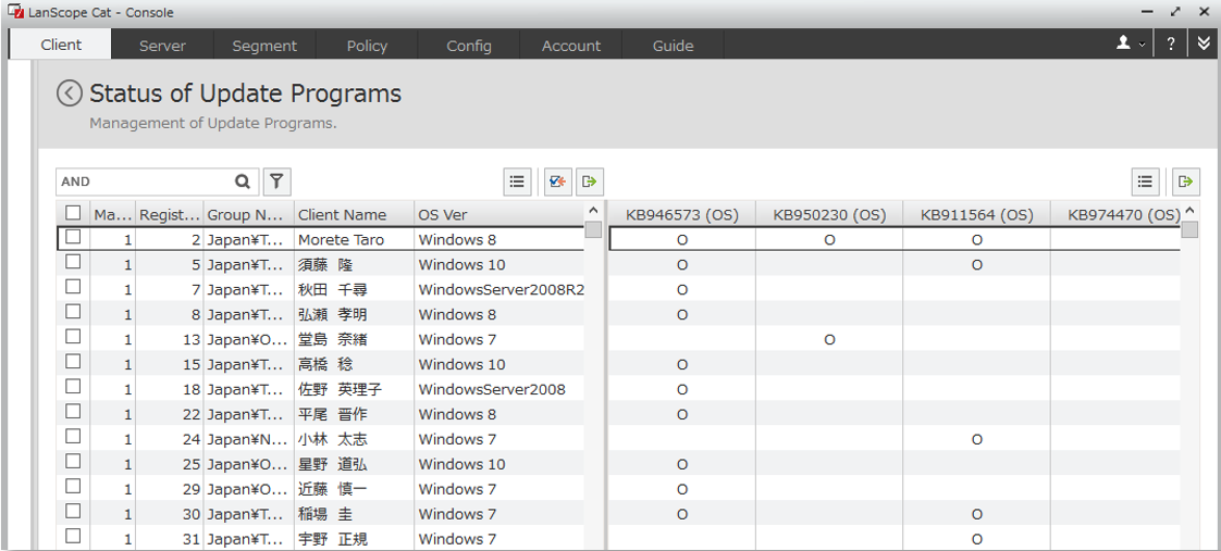 Link with WSUS, change the settings of automatic update and manual update of Windows Update at once. In addition, can check attribute information such as the description of the update and the importance, and find the PCs to which the high importance update has not been applied.