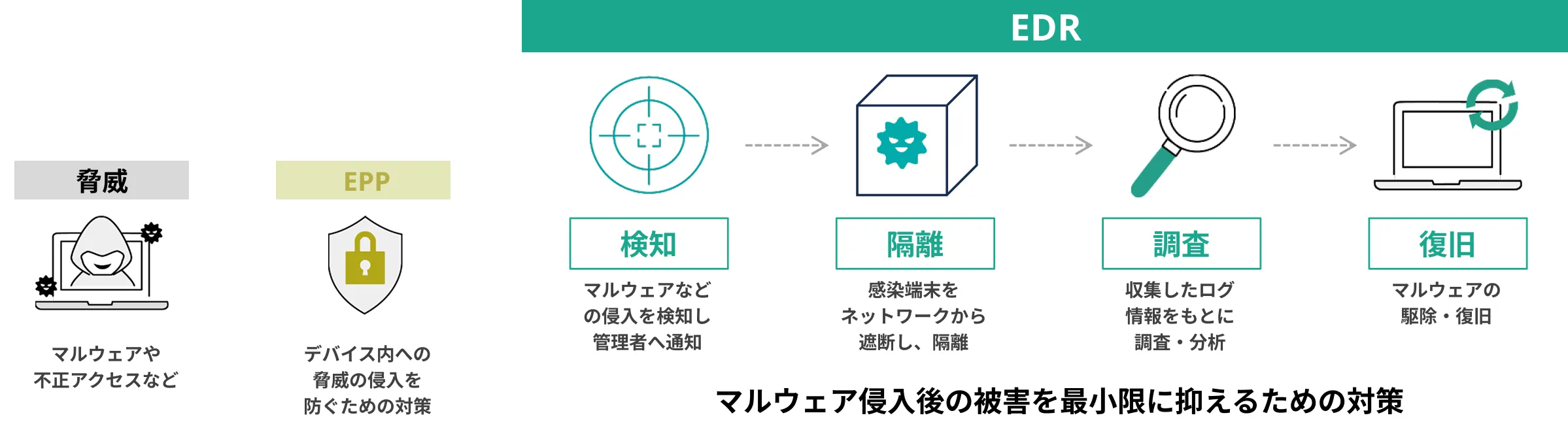 侵入をすばやく検知し、封じ込めや復旧などの対応までを一連で行う次世代型エンドポイント防御
