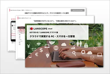 「 LANSCOPE エンドポイントマネージャー クラウド版 」は、モバイル管理に不可欠なApple Business Manager、Android Enterpriseに対応。紛失対策だけではなく、デバイスの利用制御・アプリ管理など高度なモバイル管理を実現します。