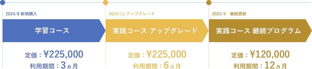 ※アップグレードの場合は「学習コース」との差額のみで「実践コース」を利用できます