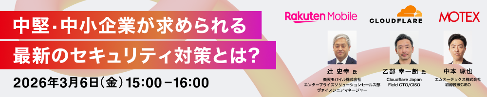 MOTEXによるエンドポイントからのゼロトラスト基盤構築、Cloudflareが提唱する次世代セキュリティ戦略、さらに楽天モバイルが提供する中堅・中小企業向けのゼロトラストマネージドサービスまで、各分野の専門家が解説します。