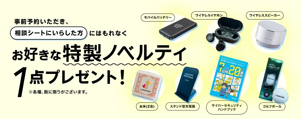 参加いただいた方にはもれなく選べるノベルティをプレゼント!