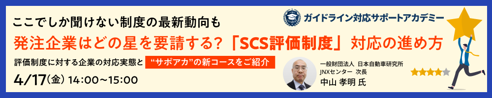 また、SCS評価制度の実証事業に評価機関として参画された一般財団法人 日本自動車研究所様をゲストに迎え、制度対応に関するご見解を伺いながら、実務視点での対応の進め方を解説します。